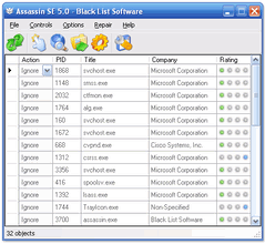 Assassin SE Anti-Virus : Download the newest cutting edge version of the exclusive Assassin technology Assassin SE version 5.0. Whether you are a computer expert or not Assassin SE will work for you. With the addition of such features as the Ratings System and over 11,000 process definitions; mingled with a user-friendly interface, the World renowned power of Assassin has become accessible to all folks regardless of their level of computer knowledge and skill.