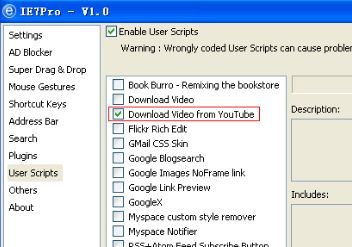 2. From IE7Pro "Features" - "User Scripts" Enable "Download Video from Youtube" or "Download Video".